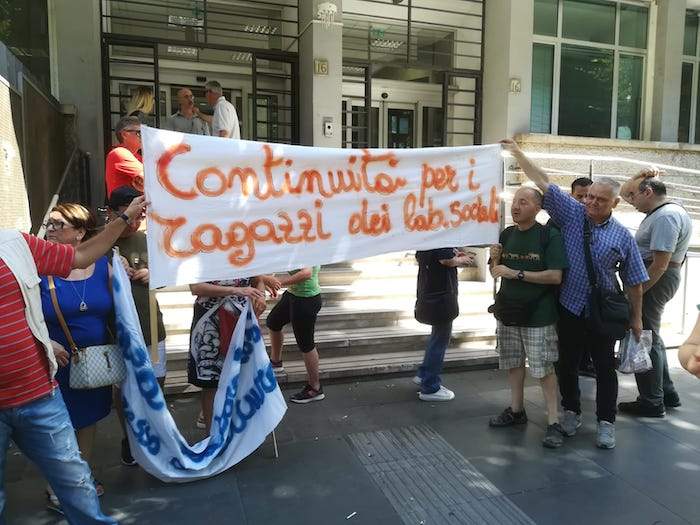 “Senza i laboratori il regresso è sicuro” e poi “continuità per i ragazzi dei laboratori sociali”. Questi alcuni striscioni apparsi nella mattinata di mercoledì 3 luglio su viale Manzoni, davanti al Dipartimento Politiche sociali. Tante le preoccupazioni – da parte di genitori e parenti – per “l’assenza di una politica chiara da parte di Roma Capitale”. Sul tavolo, il percorso dei laboratori socio-occupazionali – destinati a 65 persone che li frequentano – che risulterebbero “fortemente a rischio”.