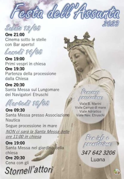 In vista del Ferragosto e della tradizionale Festa dell’Assunta, la Parrocchia San Francesco di Cerenova ha pubblicato il programma delle iniziative liturgiche e ricreative organizzate nel territorio.