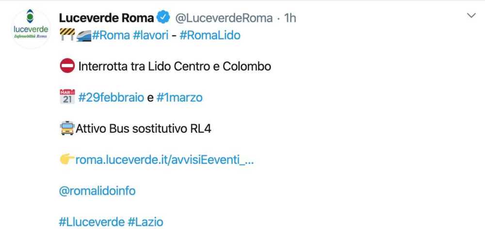 Sabato 29 febbraio e domenica 1 marzo, per lo svolgimento di lavori al cavalcavia stradale di via Cristoforo Colombo, angolo piazzale Cristoforo Colombo, la tratta Lido Centro-Colombo della ferrovia regionale Roma-Lido resterà chiusa. Questo quanto riportato su Luceverde Roma.