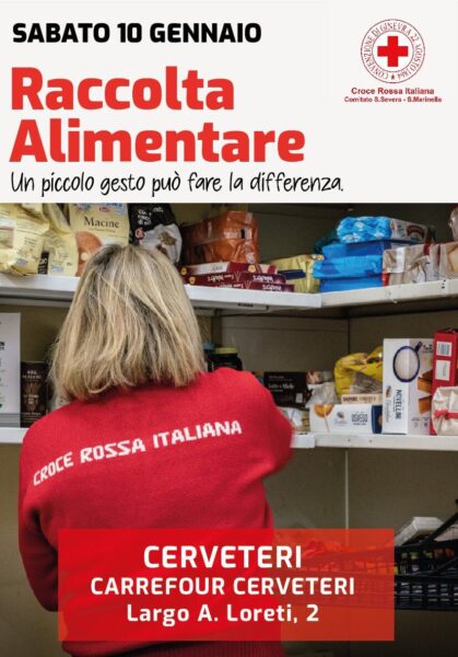 Il nuovo anno di Croce Rossa Italiana inizia all’insegna della solidarietà. Il Comitato Locale di Santa Severa – Santa Marinella nella giornata di sabato 10 gennaio sarà infatti impegnato in una raccolta di generi alimentari di prima necessità per famiglie in difficoltà davanti il Supermercato Carrefour di Cerveteri, in Largo A. Loreti n.2.
