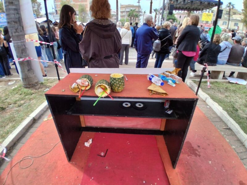 A documentare quanto accaduto, ovvero l’altra faccia della Sagra, quella che dovrebbe portare benefici e che invece fa ricadere le conseguenze sugli abitanti oltre ai vari commenti social, sono stati Ladispoli Sostenibile, Fabio Picchioni e Valerio Valentini dell’omonimo negozio di ottica. I primi hanno presentato un’analisi di quanto accaduto nel bene – poco – e soprattutto nel male. Lo showman invece si è visto devastare la postazione con conseguenze annesse, infine davanti all’esercizio commerciale un carrello abbandonato.