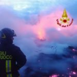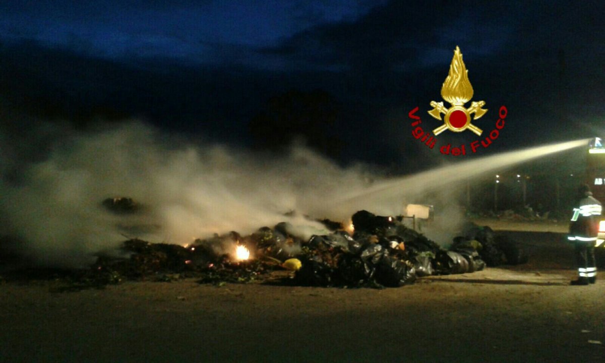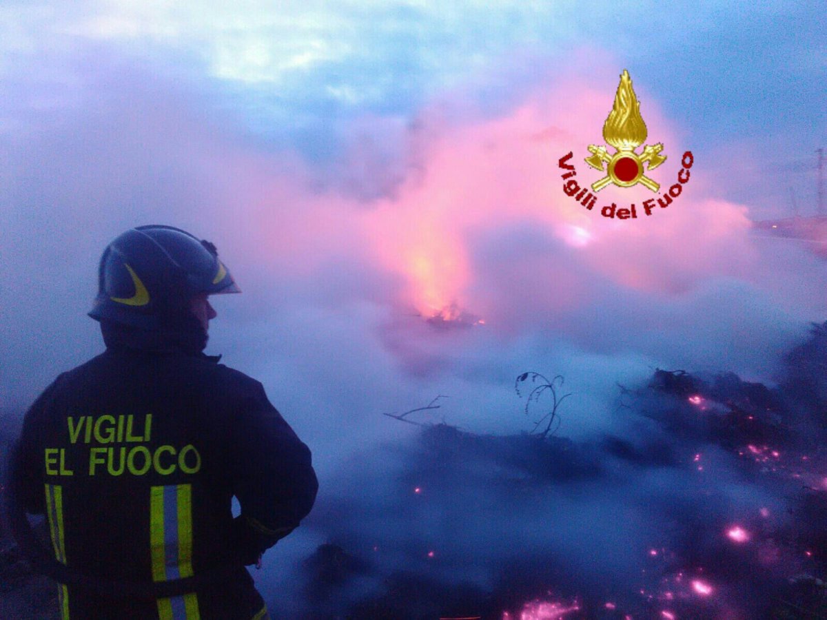 Le operazioni di spegnimento stanno richiedendo diverse ore per il grosso accumulo di materiali dati alle fiamme.
