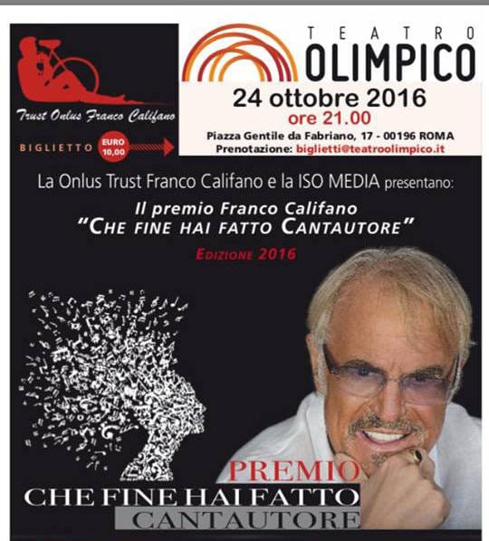 Al via la finale questa sera della prima edizione del premio intitolato al maestro Franco Califano: “che fine hai fatto cantautore” dedicato alla canzone d’autore e romanesca che si svolgerà al Teatro olimpico di Roma.