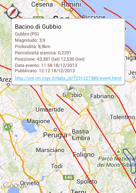 Scossa di terremoto a Gubbio di magnitudo 3.9