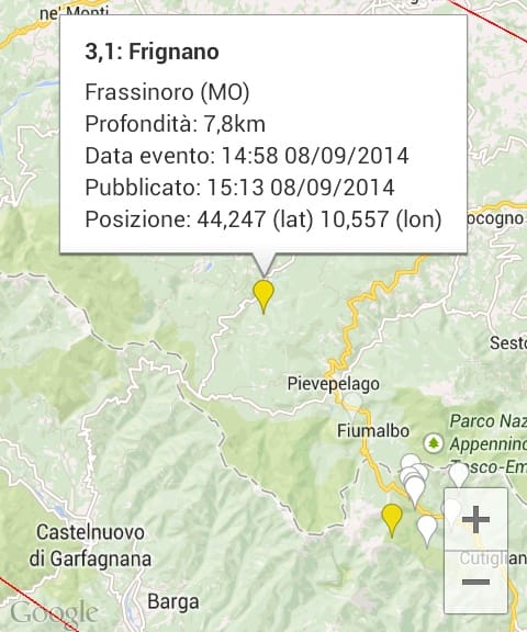 Nuova scossa di terremoto nel distretto del Frignano Garfagnana presso Frassinoro in provincia di Modena.