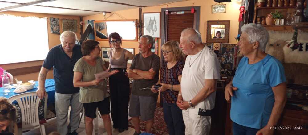 Alla lunga tavolata hanno preso parte anche il presidente del Centro, l’avvocato Pietro Messina, accompagnato da Benedetto Marasà, del direttivo. Entrambi hanno ringraziato gli ospiti Patrizia e suo marito Walter Minotti per la calorosa accoglienza, donando loro dei ricordi. L’operatrice Daniela, oltre a regalare a Patrizia e Walter il diario delle attività e del percorso anche spirituale di quest’anno delle Coccinelle, ha salutato le ragazze che stanno per ultimare il progetto, nonchè coloro che, avendo già concluso il percorso, erano presente. Come Angelica, pure lei prodiga di ringraziamenti e apprezzamenti per tutti gli operatori e i volontari che orbitano attorno a “Il Ponte”, in molti ambiti, dalle cucine al settore studio.