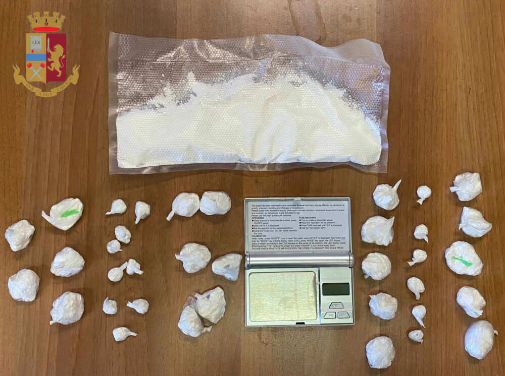 Individuato l’appartamento nel quale probabilmente si svolgeva l’illecita attività, gli investigatori hanno notato un uomo uscire dallo stesso e lo hanno perquisito trovando, occultati nell’astuccio degli occhiali da sole nascosto nello zaino, 16 involucri di cellophane contenenti cocaina per un peso complessivo di oltre 50 grammi e 95 euro, suddivisi in banconote di vario taglio, di cui non ha saputo dare contezza. La perquisizione dell’abitazione, effettuata con l’ausilio di personale della squadra cinofili, ha permesso di rinvenire ulteriori 162 grammi di cocaina, 75 euro in contanti e un bilancino di precisione.
