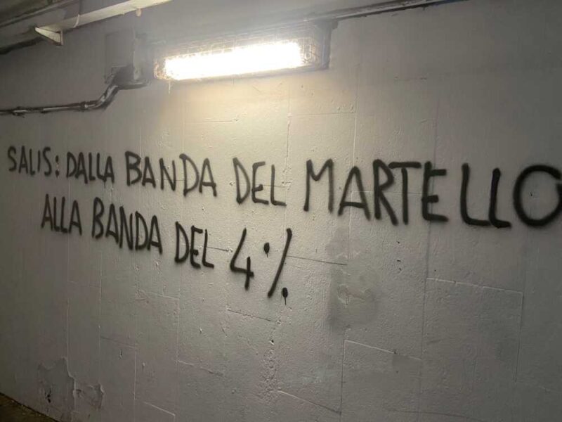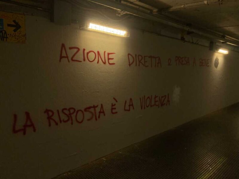 Qualche tempo fa, i muri del sottopasso sono stati tinteggiati. Eppure, nel giro di un amen, sono apparse scritte vergate con le bombolette spray. Come “vendetta contro Israele”, “devastare il quartiere dei ricchi”, “Salis: dalla banda del martello a quella del 4 per cento”.