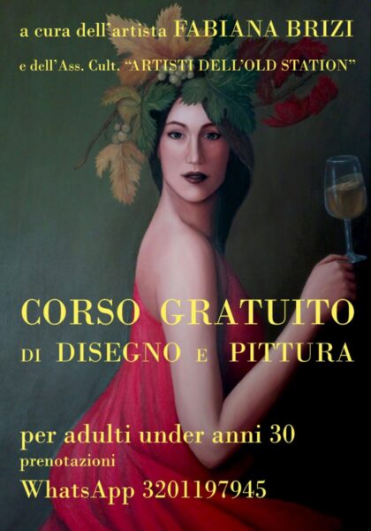 L’ associazione “Artisti dell’Old Station” propone un corso gratuito di pittura per adulti under 30 anni. Il corso si svolgerà a Tarquinia, i posti sono disponibili in numero limitato su prenotazione tramite whatsapp al cell. 320119 79 45.