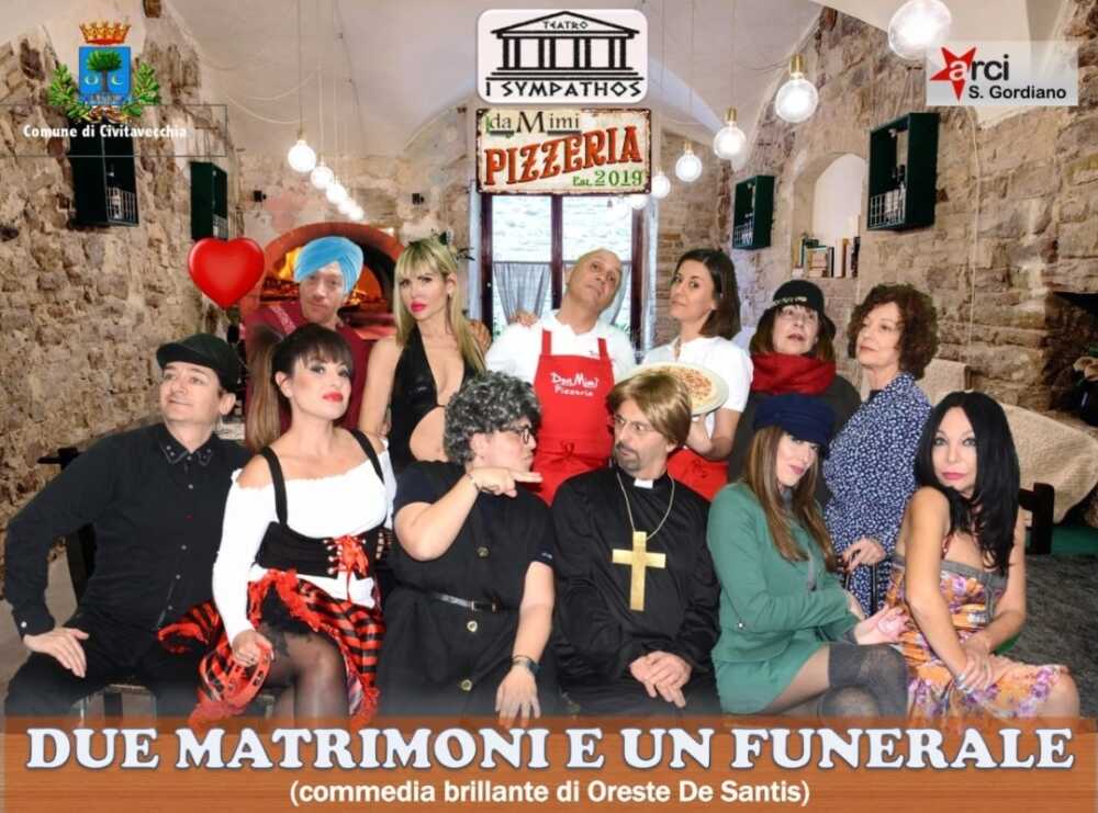 Sabato 6 maggio la compagnia teatrale “I Sympathos” porterà in scena al Teatro Traiano la commedia brillante “2 MATRIMONI E UN FUNERALE” di Oreste De Santis per la regia di Luigi Florio .