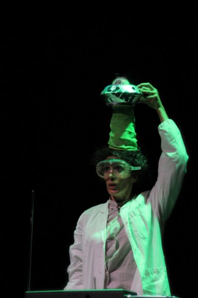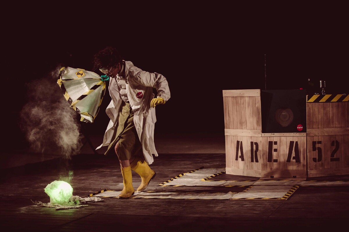 Uno spettacolo di clown teatrale che mescola musica dal vivo eseguita con clarinetto, voce, loopstation e theremin, manipolazione di oggetti e teatro di figura. Un oggetto non identificato, probabilmente di origine aliena, è caduto nottetempo dal cielo. Una scienziata americana della Naso viene inviata sul luogo dell’impatto per esaminarlo con sofisticatissime apparecchiature. Si tratta di un messaggio inviato da popolazioni extraterrestri? Cosa vorranno dire all’umanità? Un serissimo, fantascientifico gioco che porta gli spettatori in un universo popolato da alieni verdi e navicelle spaziali di carta argentata, un divertente film di science fiction completamente homemade.