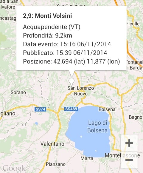 Registrata una scossa di terremoto di magnitudo 2.9 tra San Lorenzo Nuovo e Acquapendente nella Provincia di Viterbo.