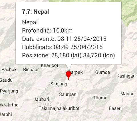 - Una seconda scossa alle 8:38 è stata registrata ad est di Kathmandu, con epicentro ancora più vicino alla città.