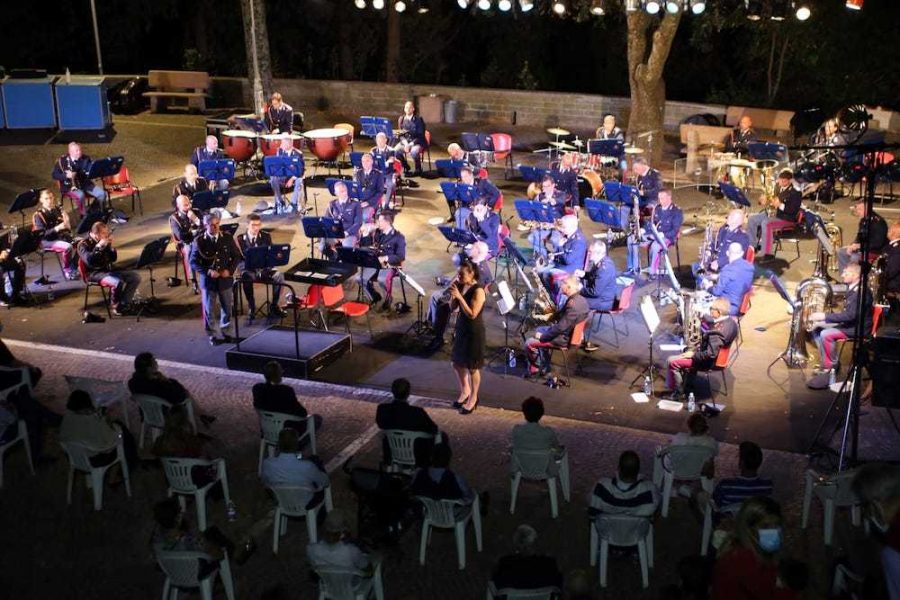 Alle 21 la Fanfara della Polizia di stato si è esibita nell’anfiteatro della Villa Comunale. Il gruppo composto da circa 50 elementi ha dilettato il pubblico con un repertorio variegato e brillante: dalla sinfonia di stampo verdiano all’omaggio ad Ennio Morricone, dai Pooh alla Cavalleria Leggera di F. V. Suppe, il tutto magistralmente sotto la direzione del Maestro Secondino De Palma. Riporta Ferdinando Bianchi nel suo “Il racconto dei Tolfetani” che già nel 1817 i festeggiamenti DI Sant’Egidio Abate prevedevano l’intervento di una banda militare. Ieri con la Fanfara, l’amministrazione ha voluto sottolineare la continuità storica e il legame profondo che lega il paese alla tradizione musicale, prettamente italiana, delle bande musicali.