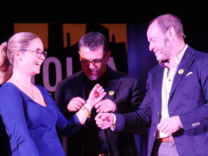 “Tolfa Gialli&Noir” è un’iniziativa realizzata dall’Associazione Culturale Chirone (che per la promozione si affida a Fiorenza Gherardi De Candei) e cofinanziata dalla Presidenza del Consiglio dei Ministri-Dipartimento Gioventù e del Servizio Civile Nazionale e dalla Regione Lazio (in platea il delegato di Zingaretti, Lorenzo Sciarretta) attraverso il Piano Annuale Interventi in favore dei Giovani, Bando delle Idee 2016. Importante anche il sostegno della Fondazione Cariciv, rappresentata dalla sua presidente Gabriella Sarracco. Oltre all’assessore alla cultura del Comune di Tolfa, Cristiano Dionisi, all’evento non poteva mancare l’on. Alessandro Battilocchio che, tra l’altro, ha consegnato a Roversi una targa per la Marsilio, in ricordo dello scomparso editore Cesare De Michelis.