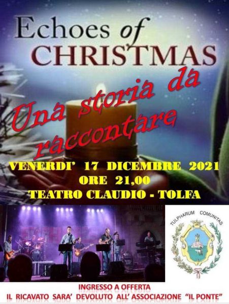 La prima giornata del Villaggio, si chiude alle 21, al teatro Claudio con la storica band tolfetana degli Echoes in “Echoes of Christmas”, una serata per ascoltare brani di Fabrizio De Andre’, Modena City Ramblers, Francesco De Gregori, Pierangelo Bertoli, Nomadi. Una serata all’insegna dell’impegno sociale e della solidarietà e nel ricordo di Don Egidio Smacchia. Ingresso a libera offerta a favore de “Il ponte”.