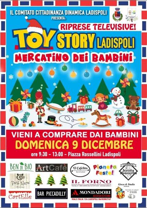 Il Mercatino dei Bambini e Ragazzi “TOY STORY LADISPOLI” è ideato, promosso e realizzato, dal Comitato cittadino “Cittadinanza Dinamica Ladispoli” e patrocinato dall’ Ufficio Cultura del Comune di Ladispoli.