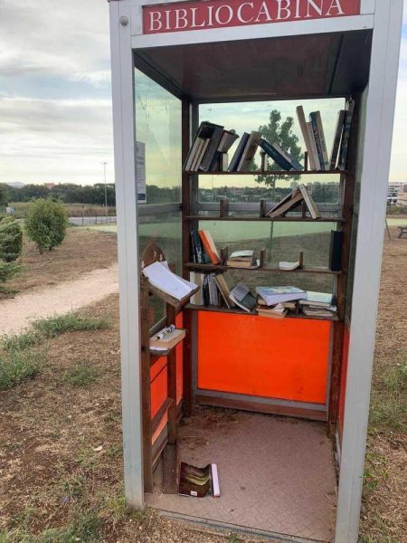 Tra i simboli del quartiere colpiti c’è stata anche la Bibliocabina, una cabina telefonica trasformata in biblioteca e nata per lo scambio gratuito di libri. Quei libri che, qualcuno, ha deciso di dare alle fiamme.