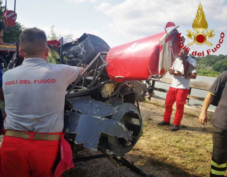 In riferimento all’intervento presso Nazzano Romano, alle 12.35 è stato effettuato da parte dei sommozzatori dei Vigili del Fuoco il recupero dei due corpi , trovati ancorate ai sedili dell’elicottero precipitato.