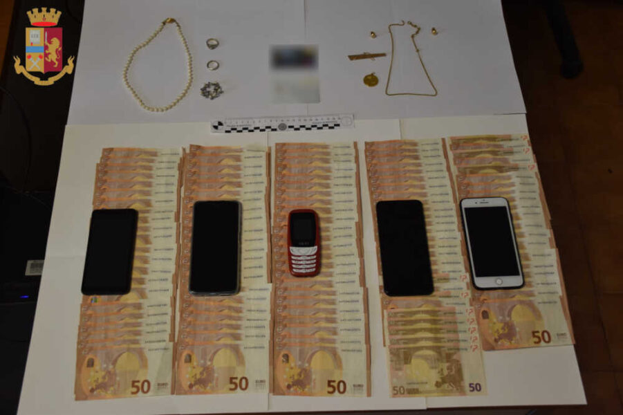 A quel punto i due soggetti apparivano visibilmente nervosi ed il mezzo su cui viaggiavano risultava noleggiato. Gli agenti, insospettiti dal loro comportamento, approfondivano il controllo trovandoli in possesso di 5.750 euro in banconote da 50 euro, vari monili d’oro e due carte di debito intestate ad una 92enne di Civitavecchia.