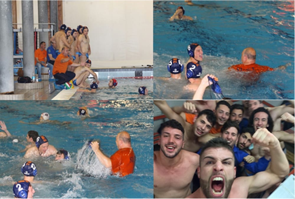 Poi accade quello che sembrava impossibile , quando mancano 2 minuti la Fenice pareggia, tutto ciò che di buono il Tyrsenia aveva fatto per 3 tempi, in meno di 6 minuti svanisce,si torna in parità 8-8. La squadra avversaria si carica e cerca la vittoria, il rischio sconfitta per noi è elevato. Passiamo incolumi un lunghissimo minuto, poi arriva una superiorità per noi,Alessandro Foschini gira palla per Francesco Marcucci che da posizione 2 ,vede lo spiraglio giusto e spara in porta il goal che ci riporta in vantaggio. La Fenice torna in attacco schierandosi a semicerchio, ma Paris con un salto felino intercetta un passaggio a 52 secondi dalla fine e torniamo in possesso palla. Mister Monti chiama il Time out ed ordina ai suoi di gestire la palla per tutti e 30 i secondi a disposizione in modo da lasciare alla Fenice solo 22 secondi di gioco. I ragazzi rispettano gli ordini di scuderia, giro palla e …….ultimi 22 secondi da giocare con il cuore in gola. La Fenice si porta tutta in attacco i nostri ragazzi chiudono tutti gli spazzi a 7 secondi dalla fine stoppiamo un tiro in porta, è fatta!! I secondi sembrano non passare mai 6-5-4….. sugli spalti i nostri tifosi sembrano congelati , gli occhi sono rivolti al tabellone, Marcucci tiene palla…. 3-2-1-….. è finita, siamo salvi matematicamente con due giornate di anticipo, agguantiamo il sesto posto a tre punti dal quinto, le tribune esplodono in un boato, giù in vasca Mister Monti finisce in acqua per mano di Marco Napolitano è tutta una festa, ma quanta paura!
