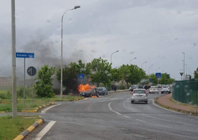 Auto in fiamme a Ladispoli, alla rotonda di via Settevene • Terzo Binario News