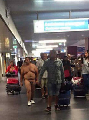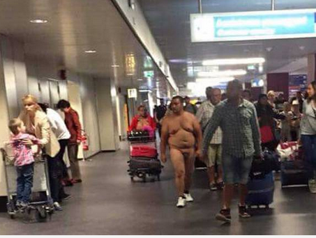 Si tratta di un passeggero con indosso soltanto un paio di scarpe da ginnastica e un mini-perizomma. Almeno stando alle foto che stanno facendo il giro del web. Melle immagini si vede un uomo camminare accanto a dei turisti nel Terminal 3 in “costume adamitico”. Le foto sono diventate virali, ora la polizia sta verificando l’attendibilità delle immagini.