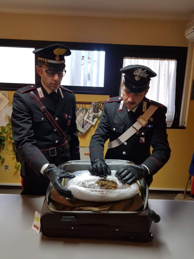Poco più tardi i Carabinieri della Stazione di Tor Bella Monaca, in località Torre Angela, in hanno rinvenuto un trolley abbandonato, con all’interno 3,2 kg di marijuana.
