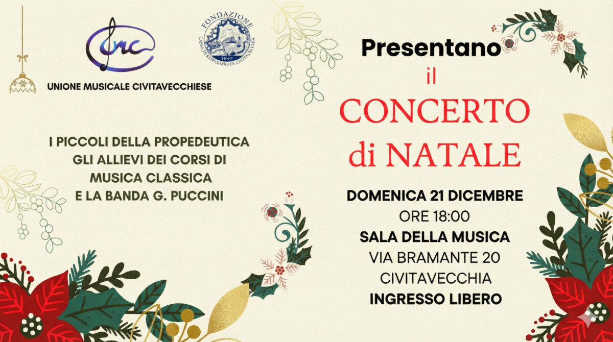 Si aprirà con il concerto “Un Natale oltre le note ” l’augurio corale rivolto alla città dall’ Unione Musicale Civitavecchiese che propone i motivi più popolari del repertorio musicale natalizio. Tre le iniziative: Il primo è dedicato alla solidarietà con una raccolta fondi a favore della Caritas Diocesana e della Comunità S. Egidio. Domani al Teatro Traiano e vedrà protagonisti tutti i docenti del settore moderno della storica scuola di via Bramante oltre a molti altri straordinari musicisti noti in città e non solo. A loro si aggiungerà a sorpresa anche un coro con moltissime voci per sottolineare alcuni brani particolari.