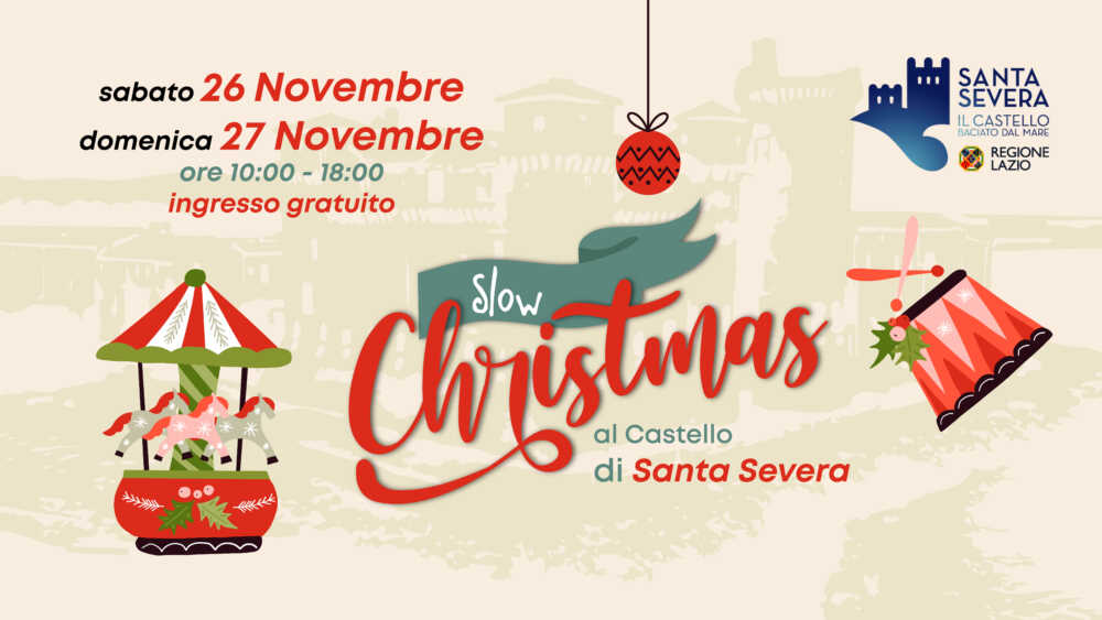 Il 26 e 27 novembre 2022 presso il Complesso Monumentale del Castello di Santa Severa, spazio della Regione Lazio gestito da LAZIOcrea in collaborazione con il Comune di Santa Marinella, dalle ore 11 alle ore 18, è in programma Slow Christmas un evento in due giornate ad ingresso libero all’insegna dell’artigianato artistico e sostenibile, dove sarà possibile acquistare regali di natale artigianali ed ecosostenibili in un’atmosfera rilassata e senza stress, in cui saranno offerte in contemporanea sessioni di yoga, incontri culturali, musica, laboratori e giochi per bambini, area food a cura di ColDiversa con l’Associazione Abili Oltre.