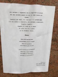 Sono tornati infatti i poeti ladispolani (il collettivo dei poeti nostrani) che hanno nella notte lasciato tracce di parole in rima sui muri del centro.