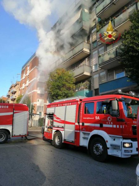 Sul posto anche Municipale e Polizia perché sono in corso le operazioni di evacuazione. Mota paura nel quartiere per le fiamme visibili dalla strada.